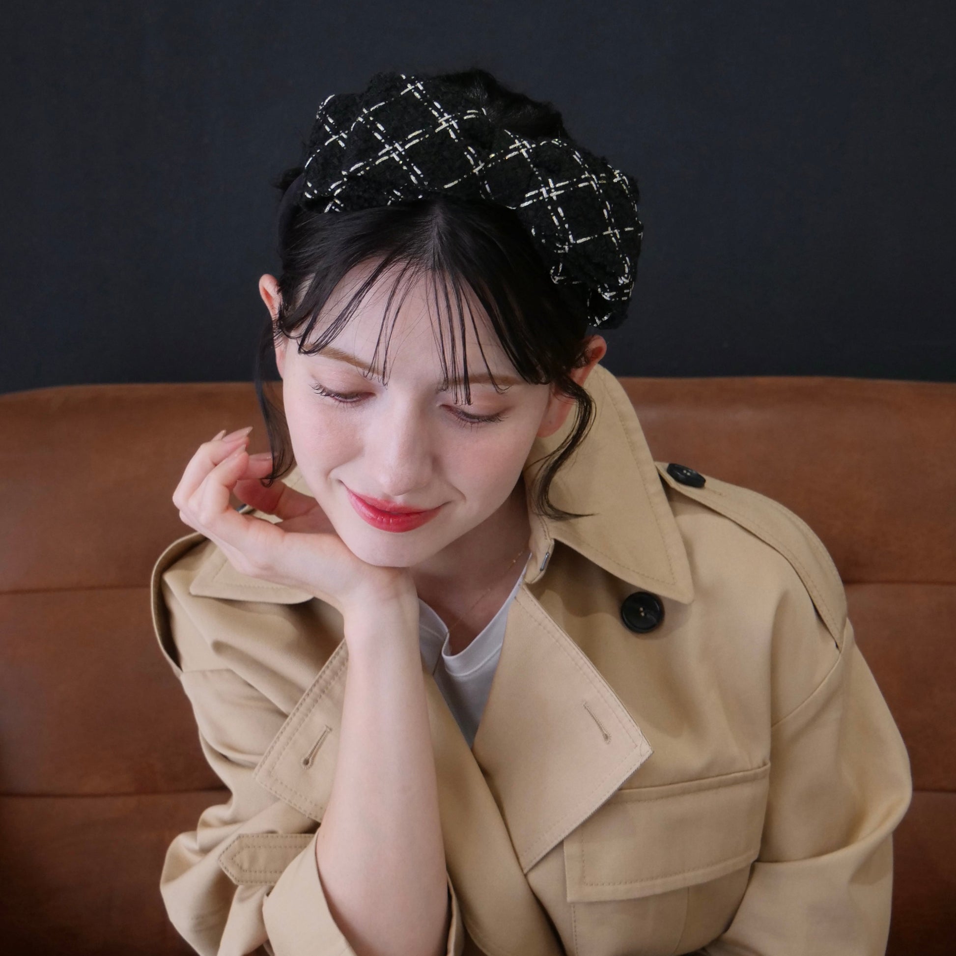 maison de tiara初登場、ファッション界の名門「B社」の象徴的なツイード生地を使用したカチューシャ。
