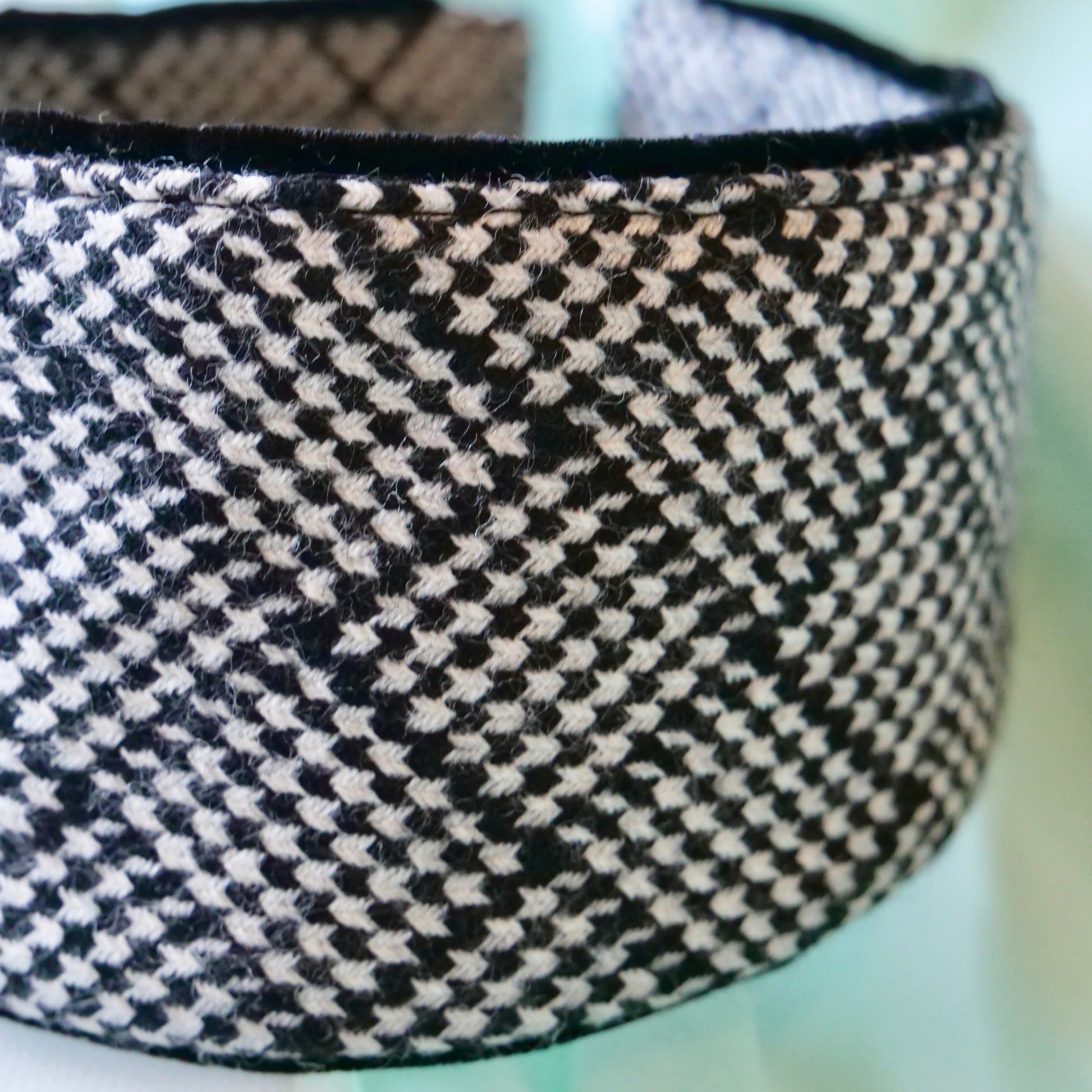 maison de tiara初登場のスコットランドツイードはロンドン発の斬新なツイード「DASHING TWEEDS(ダッシングツイード)」のもの。イギリスの元祖スポーツウェア生地であるツイードを都市型にアレンジしています。デザイナーがロンドンに行った際に買い付けてきたものです。ブラックとホワイトのマニッシュな格子柄でマニッシュなスタイルをお楽しみください。