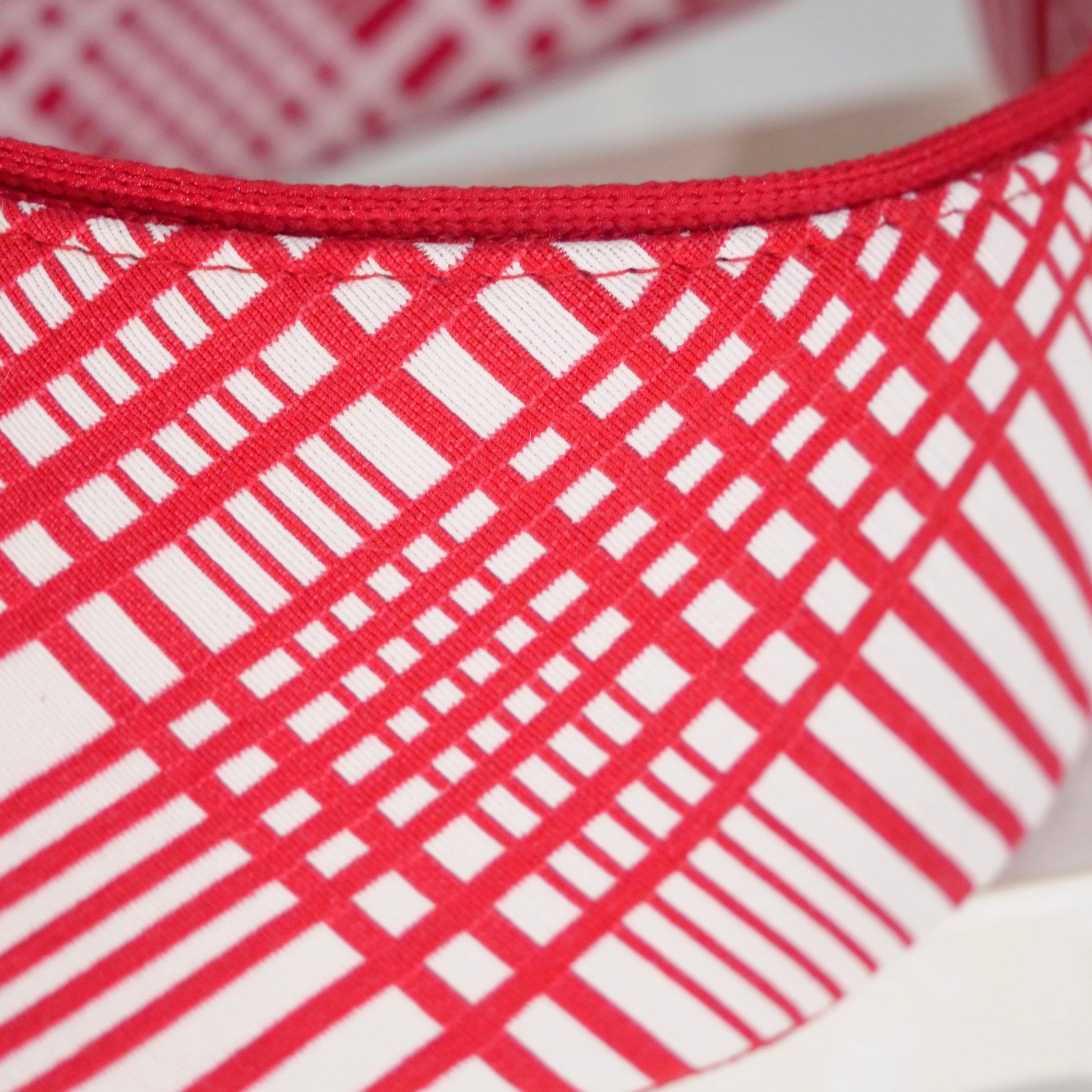 クラシックな魅力と現代的なセンスが見事に融合した赤と白のチェック柄ファブリックはモスキーノのもの。