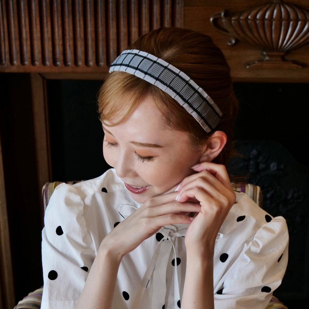 丁寧に折られたプリーツが上品で洗練された印象をもたらし、季節やシーン、年代を問わず着用できるオールマイティーなカチューシャです。